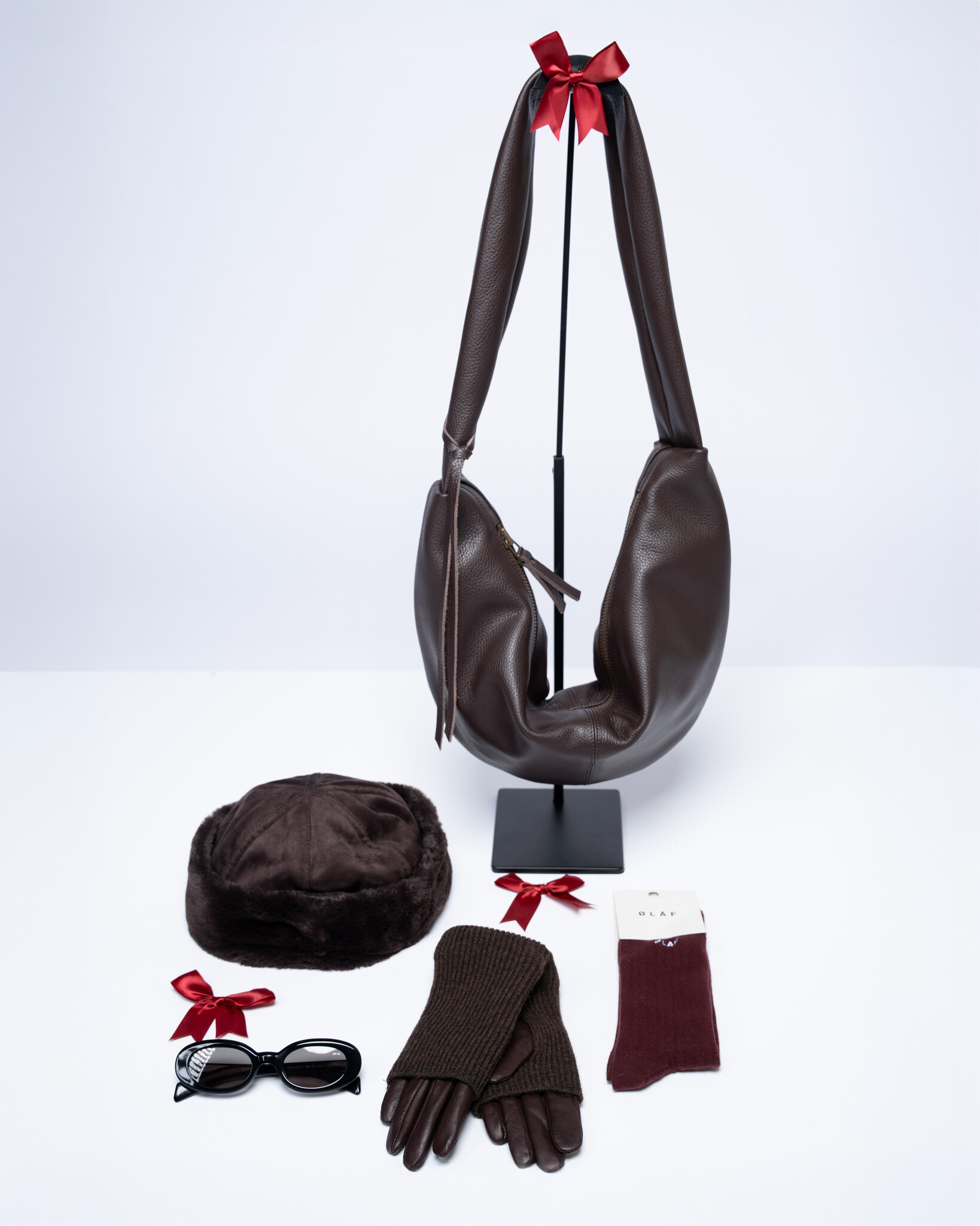 A playful mix of everyday essentials. Think a soft NONA bag, a warm Modström beanie, cosy Markberg gloves, ØLÅF socks and a KOMONO pair of sunglasses to finish your look.