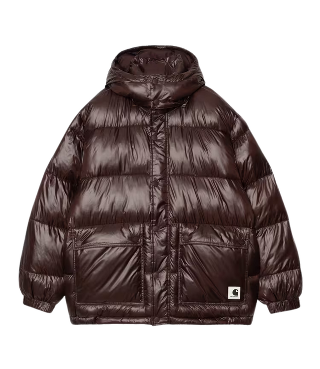 The Women’s Benson Jacket is crafted from polyester and padded with faux down for warmth. It features a stand collar, removable adjustable hood, two front patch pockets, and a woven Square Label.