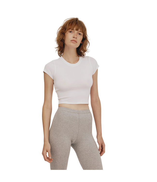 This soft, form-fitting baby tee is made from 95% organic cotton with added stretch for a comfortable, flattering fit. Designed with short sleeves, it’s an easy everyday essential with a playful, snug silhouette.