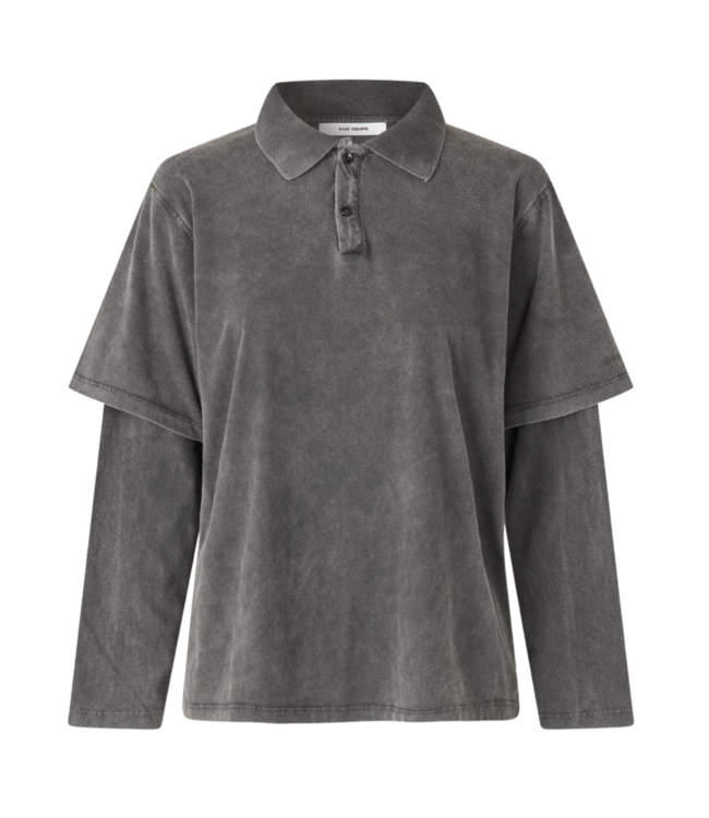 Relaxed-fit polo made from soft washed organic cotton. Features a layered short-over-long sleeve look, button placket, and tonal logo on the sleeve.