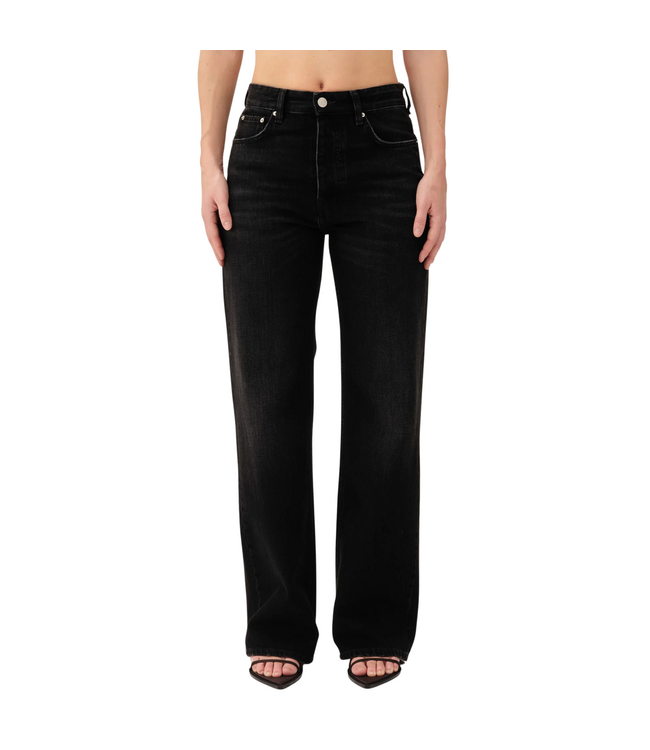 The Genoa jeans are a mid-waisted unisex style with a straight fit and subtle flared leg. Designed with a button fly, five belt loops, branded logo buttons, a leather logo patch and signature dart detail on the back pocket.